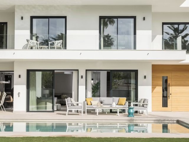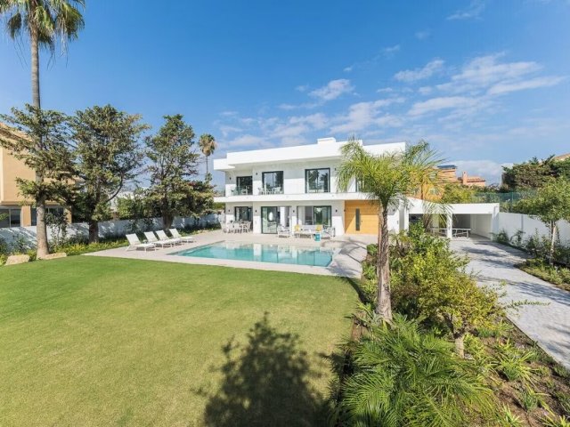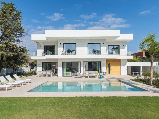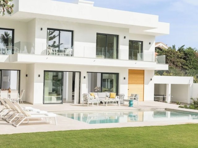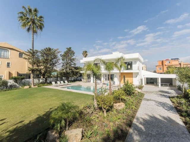 This luxury family-friendly holiday villa in Marbella offers 6 bedrooms, a private pool and premium amenities, ideally located near Puerto Banus.
