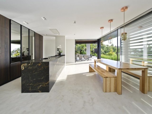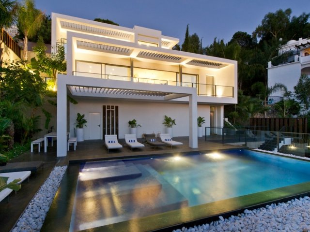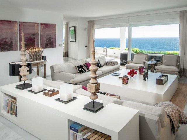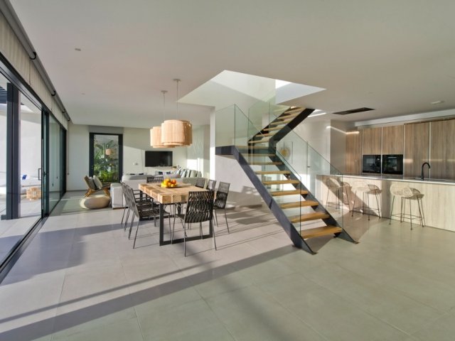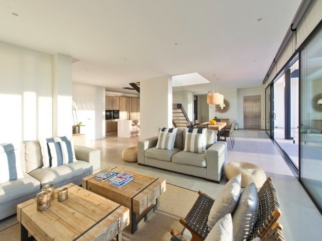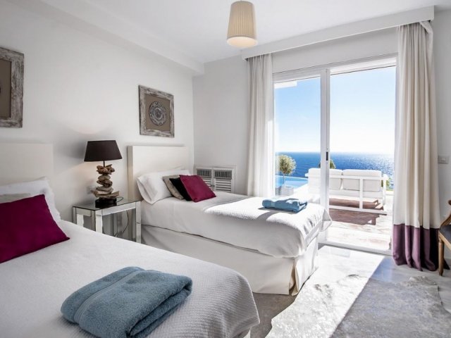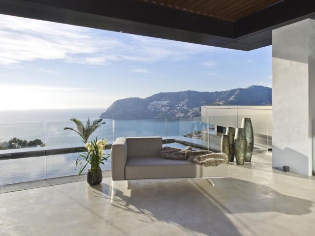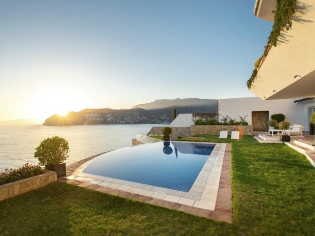 This modern luxury villa in Almunecar offers stunning bay views, an infinity pool, and stylish, beach-inspired interiors.