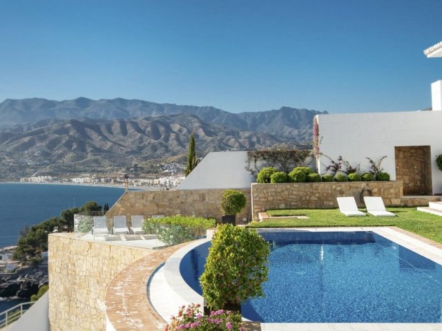 Luxury 7-bedroom villa in Punta de la Mona, Almunecar, with stunning sea views, private pool, jacuzzi, and modern amenities. Ideal for 14 guests.