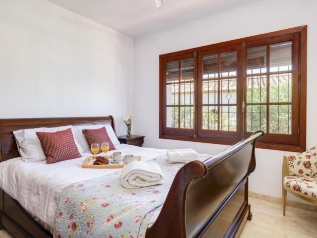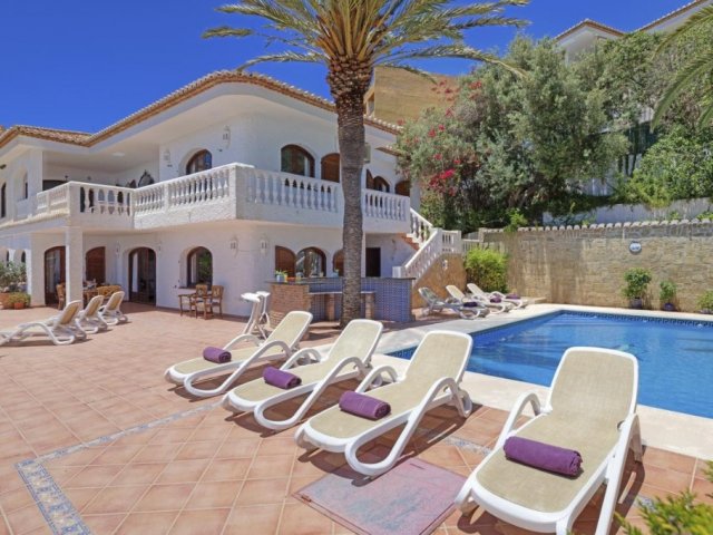 This holiday villa in La Herradura, Costa Tropical offers 6 bedrooms, a private solar-heated pool, and sea views, perfect for a family getaway.