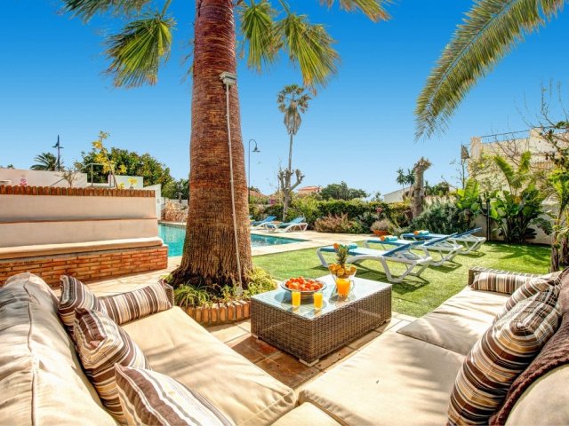 Enjoy this luxurious 4-bedroom holiday villa with a private pool and beautiful gardens, just minutes from the beach, perfect for family or group rentals.