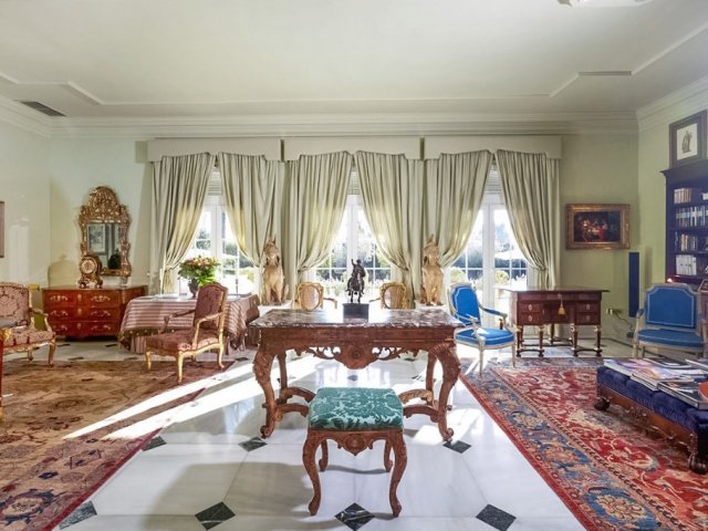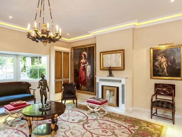Nestled in a park-like estate, enjoy opulent interiors, infinity pool, lush gardens, and proximity to Puerto Banus and Marbella's Old Town.