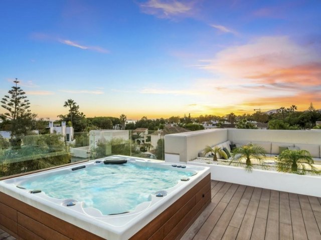 This luxury 4-bedroom holiday villa in Marbella offers an infinity pool, concierge services, rooftop terrace, and breathtaking views.