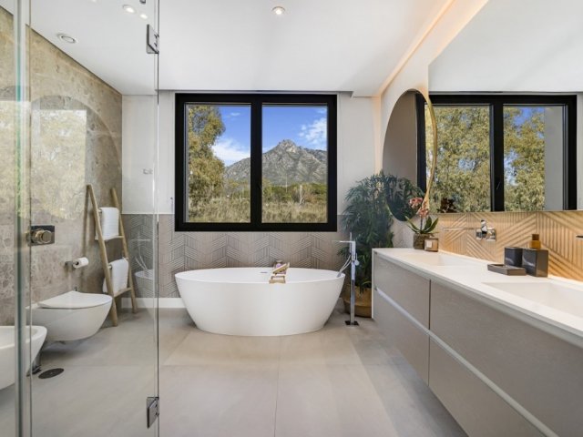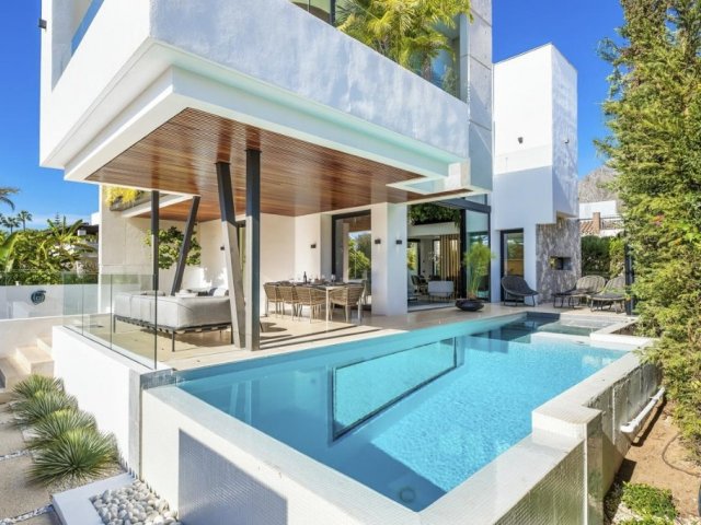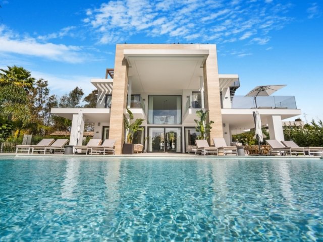 Ultra-modern six-bedroom villa in Sierra Blanca with heated infinity pool, rooftop jacuzzi, panoramic sea views and prime Golden Mile location.