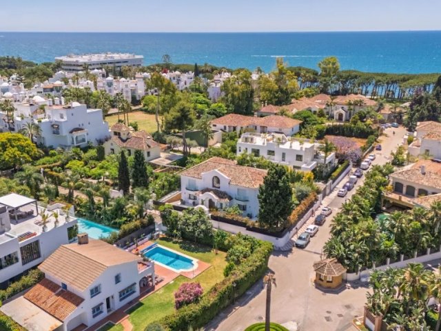 This luxury holiday villa on the Costa del Sol offers 6 bedrooms, a private pool and an exceptional location just steps from the beach.