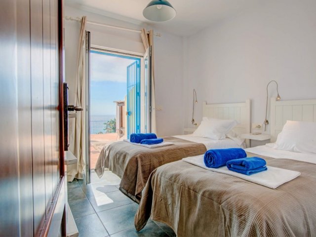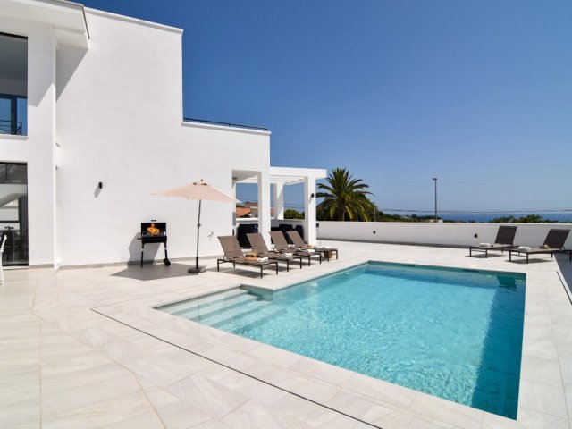 A spacious holiday retreat featuring two private pools, offering sun-soaked relaxation with beautiful sea and mountain views.