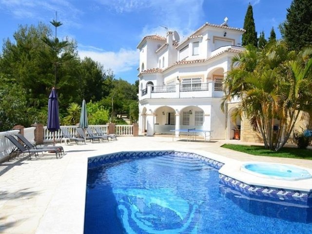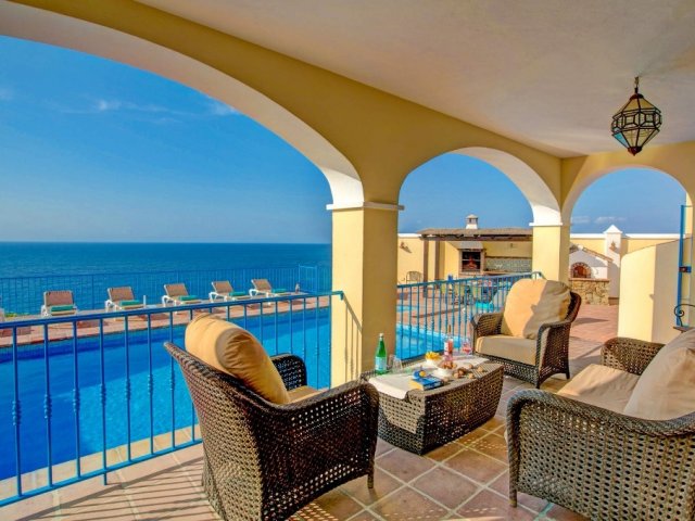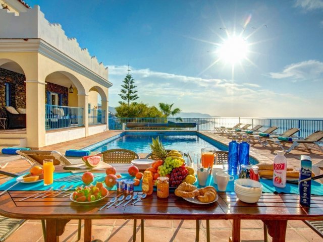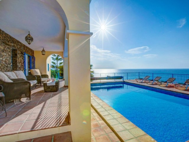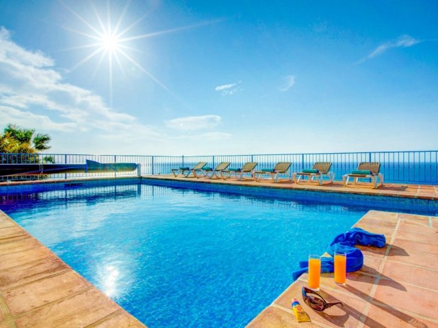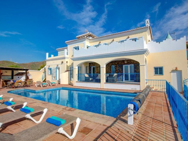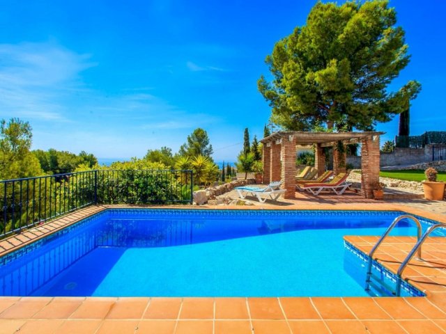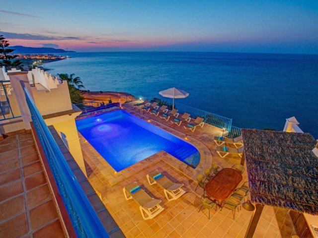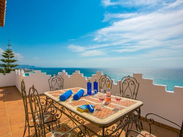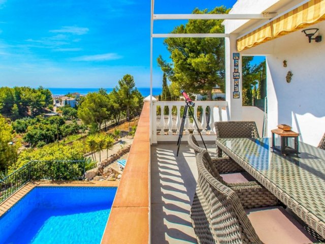 6-bed retreat with sea views in Nerja, Costa del Sol. Alfresco dining, pool, up to 12 guests, air conditioning in 5 bedrooms and WiFi ensure a comfortable stay.