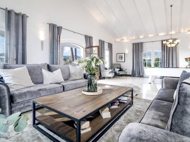 Elegant 4-bedroom Benahavís villa with breathtaking sea and mountain views, private heated pool, jacuzzi, and luxury interiors near Marbella and Puerto Banús.