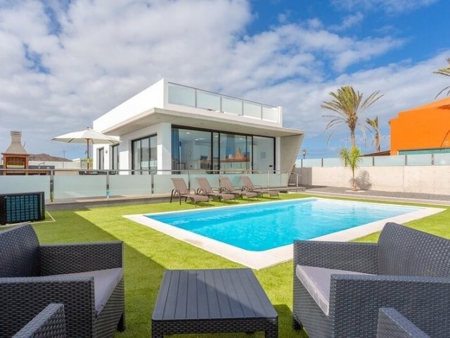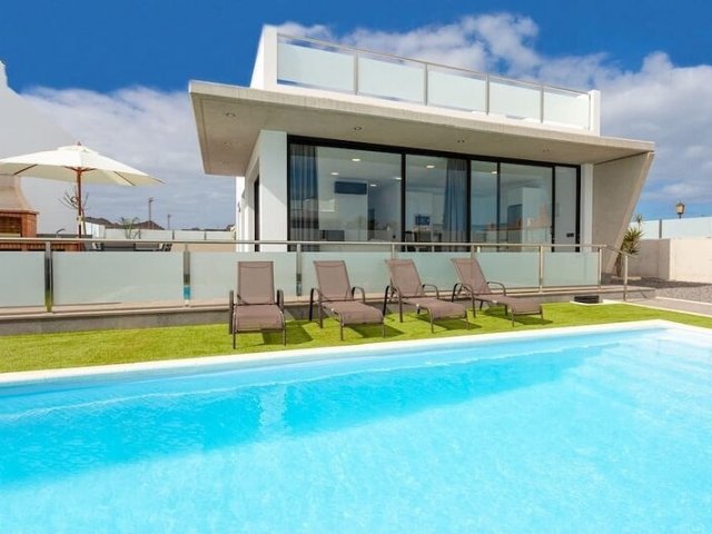 A short stroll from the beach, this stylish 3-bedroom escape in Corralejo features a private pool and beautiful views, ideal for relaxed holiday rentals.