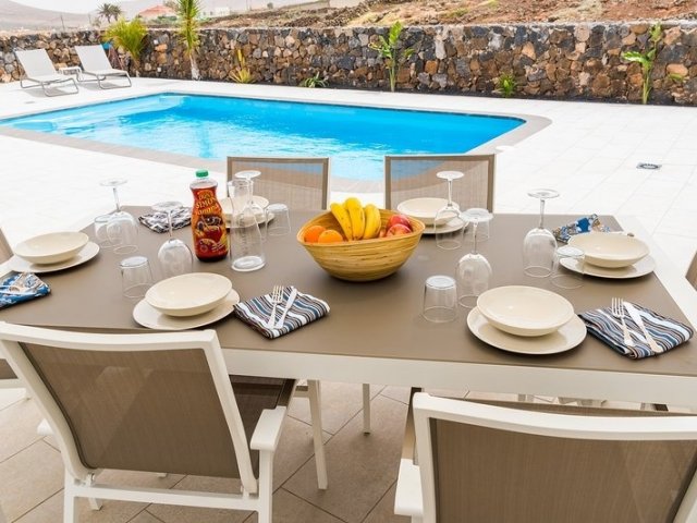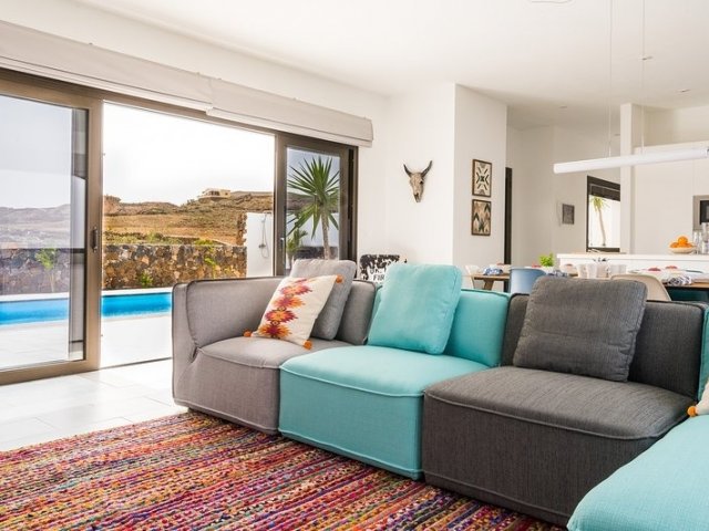 This holiday villa in La Oliva, Fuerteventura features 3 bedrooms, a private heated pool and beautiful island views, ideal for a luxury family stay. Sleeps 6