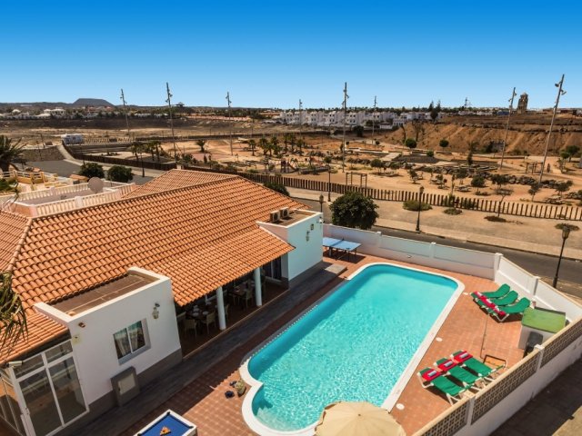 This charming holiday villa offers 3 bedrooms, a private pool and a golf course setting, just minutes from Corralejo and nearby beaches.