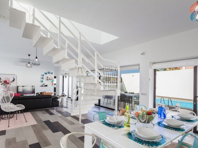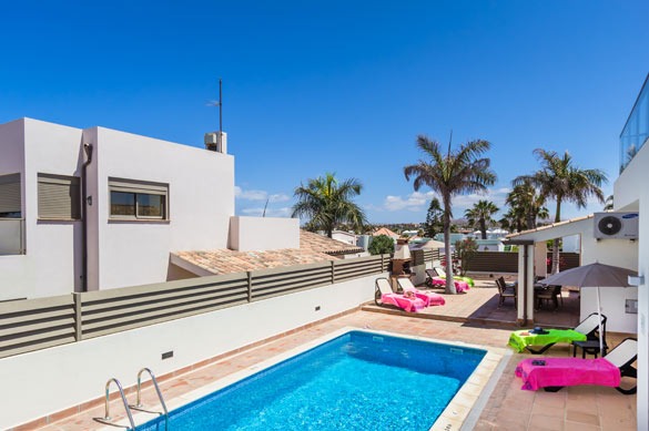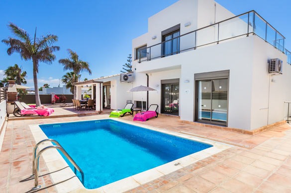 This spacious holiday home in Corralejo offers 4 bedrooms, a private pool and easy walking access to shops, restaurants, beaches and Acua Waterpark.