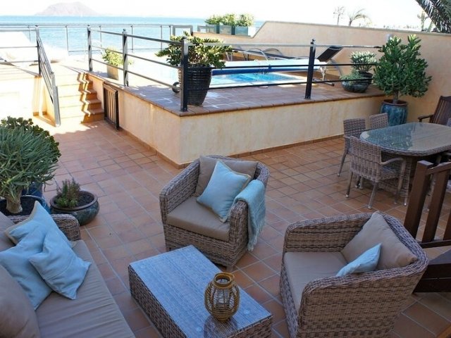 This beachfront holiday villa offers a private heated pool and easy access to local amenities, perfect for a relaxed and comfortable stay