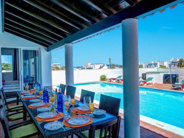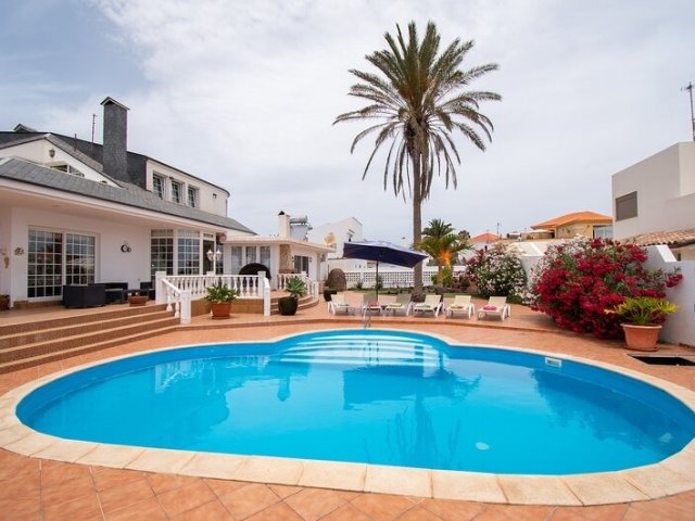 This spacious 5-bedroom holiday villa in Corralejo is ideal for families and groups, featuring a large heated pool and close to shops and restaurants.