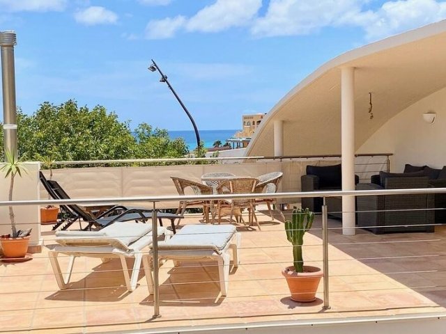 Steps from the beach, this chic 4-bedroom retreat in Fuerteventura offers a private pool and breathtaking sea views for relaxed coastal rentals.