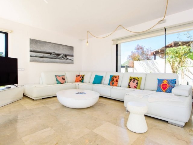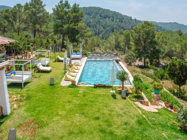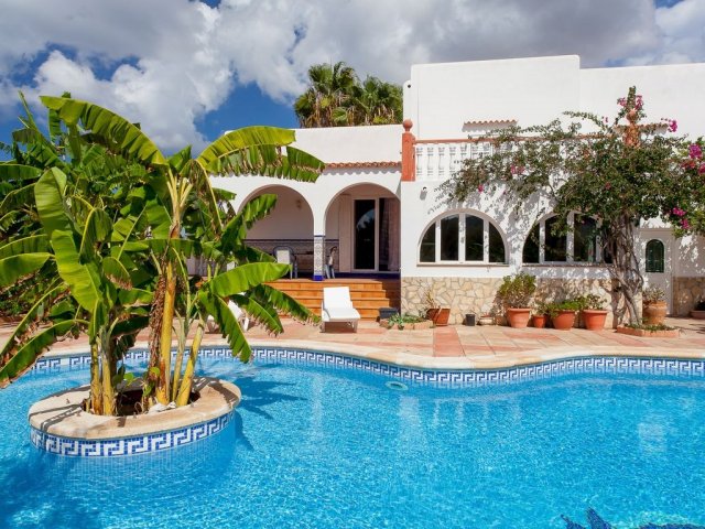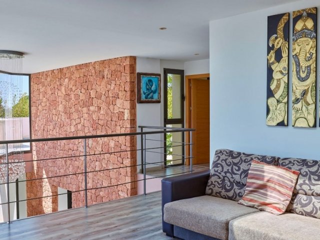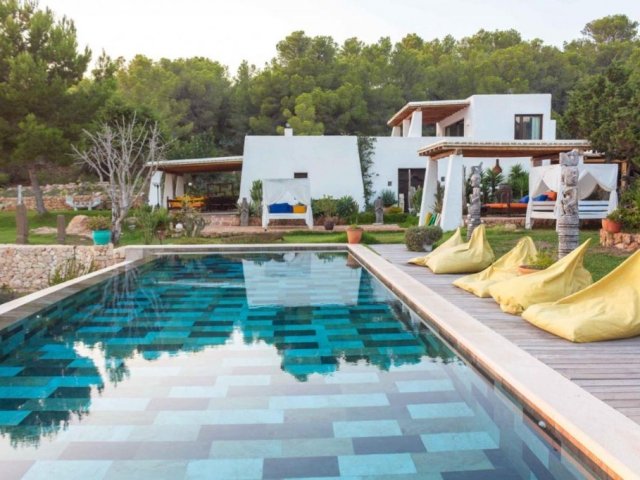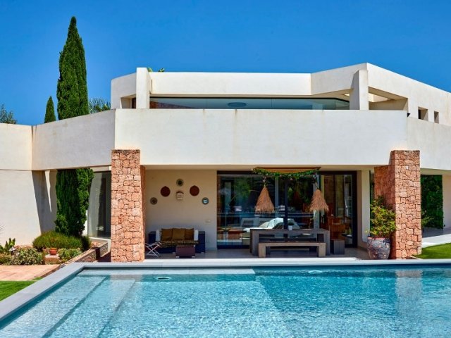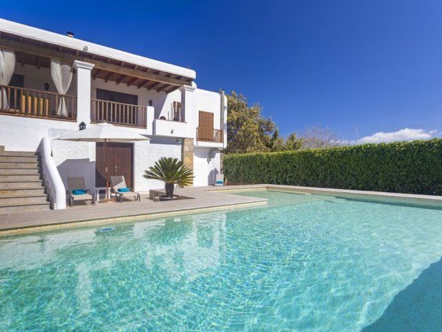 This spacious 5-bedroom retreat in Ibiza features a private pool and generous living areas, making it ideal for family holidays or group rentals.