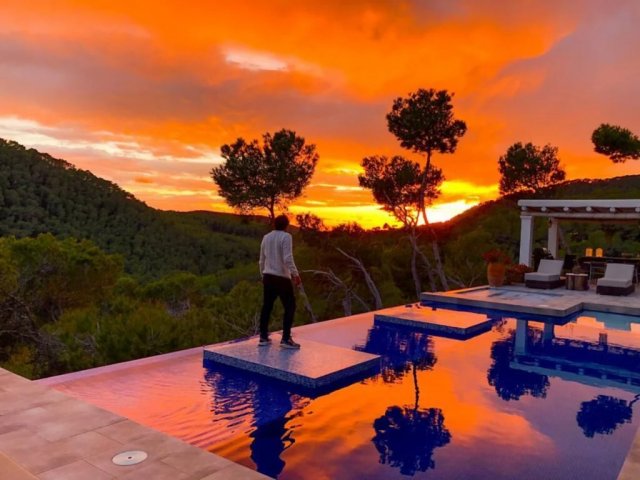 Romantic 3-suite Ibiza hideaway with panoramic sea views, infinity pool, Jacuzzi, terraces, and total privacy just minutes from Ibiza Town and top beaches.