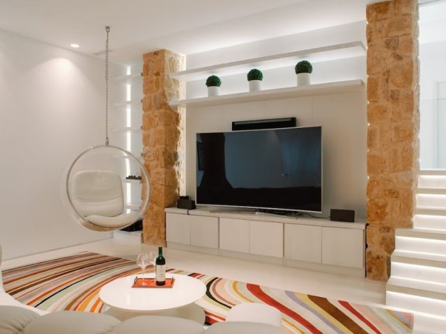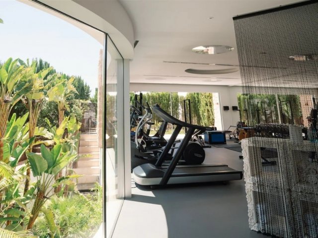 Stylish 4-bed villa near Cala Bassa with sunset views, private pool, gym, and spacious interiors-perfect for a relaxing Ibiza holiday.