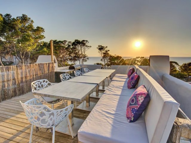 A luxurious 6-bedroom cliffside retreat in Cala Moli, offering breathtaking sea views, direct beach access, and unforgettable sunset experiences.