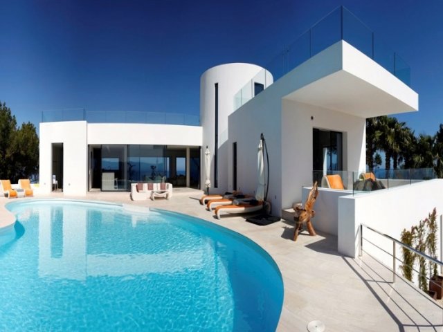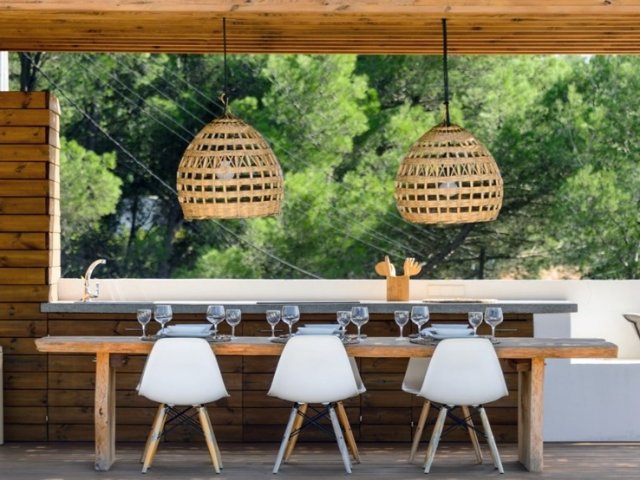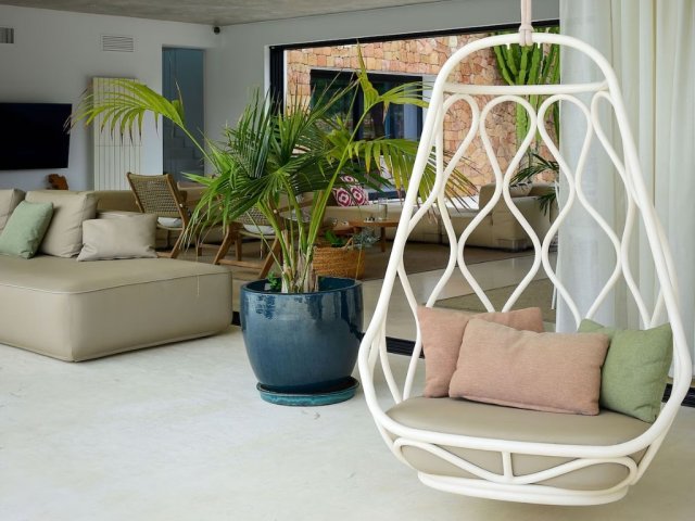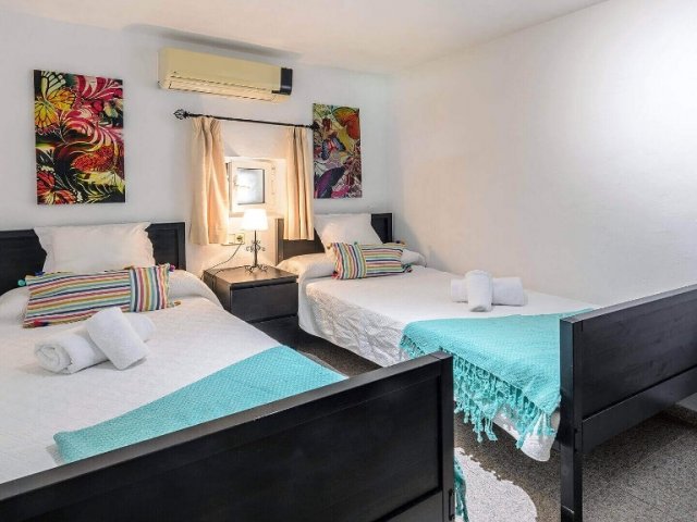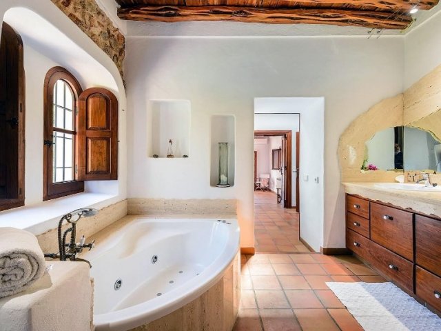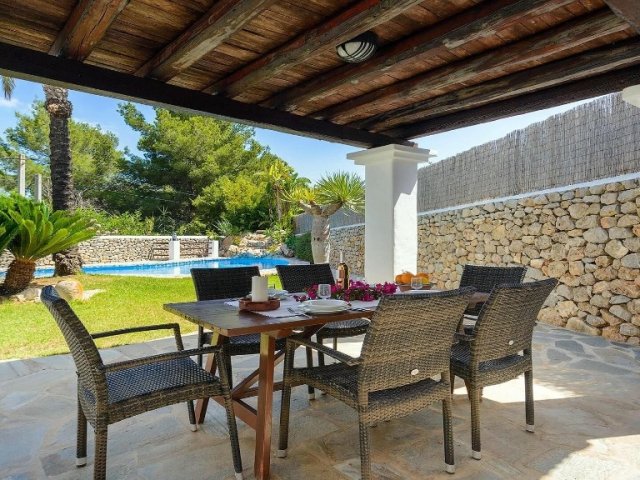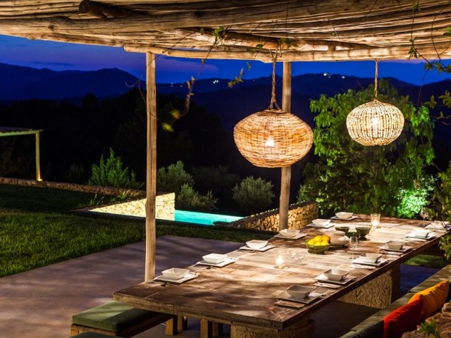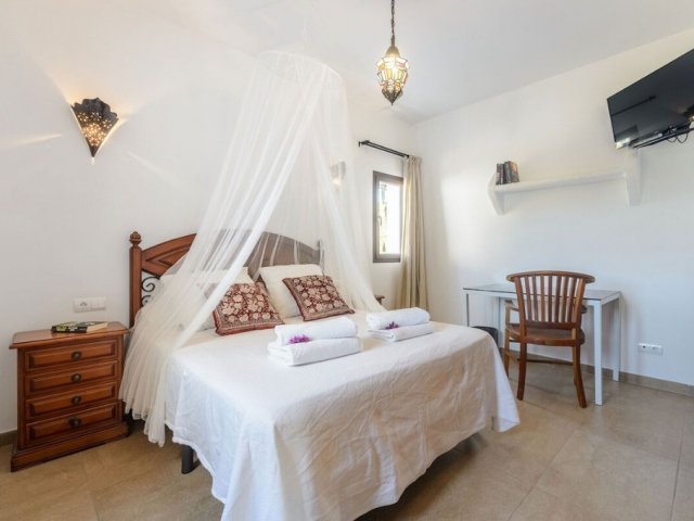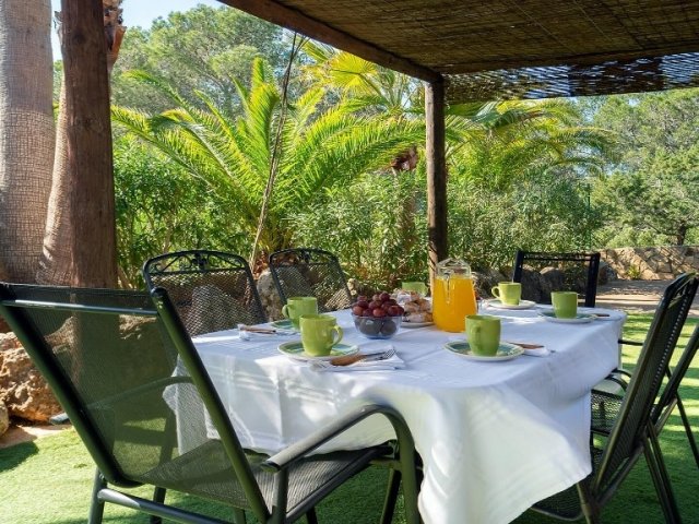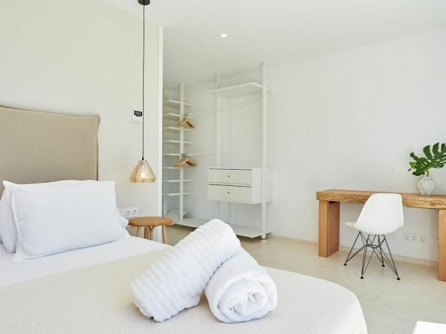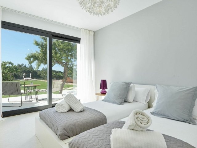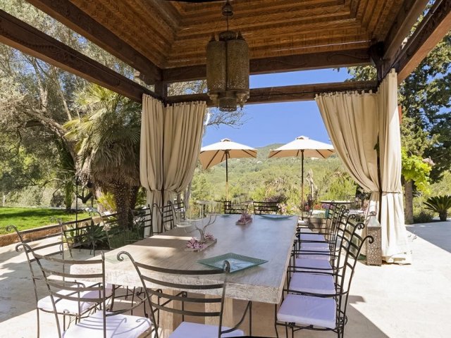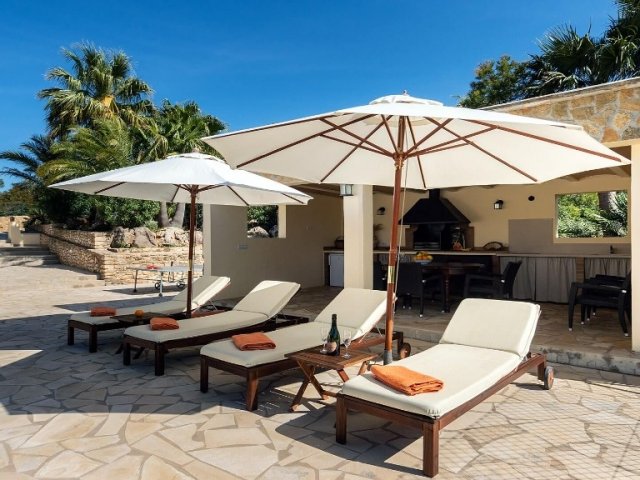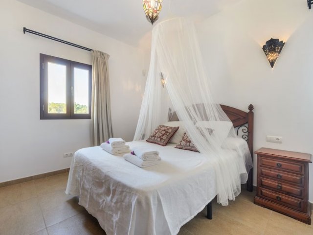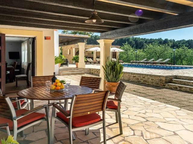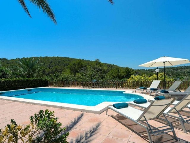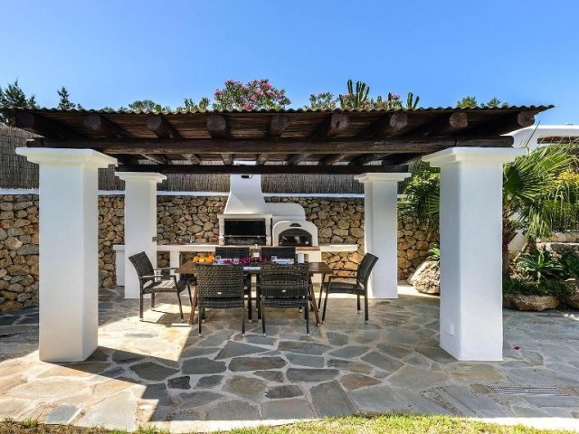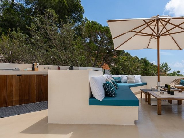 Luxury villa in Ibiza, 8 bedrooms, private pool, and beautiful gardens for a relaxing family holiday. Sleeps 16 guests. Ideal for a serene and luxurious getaway