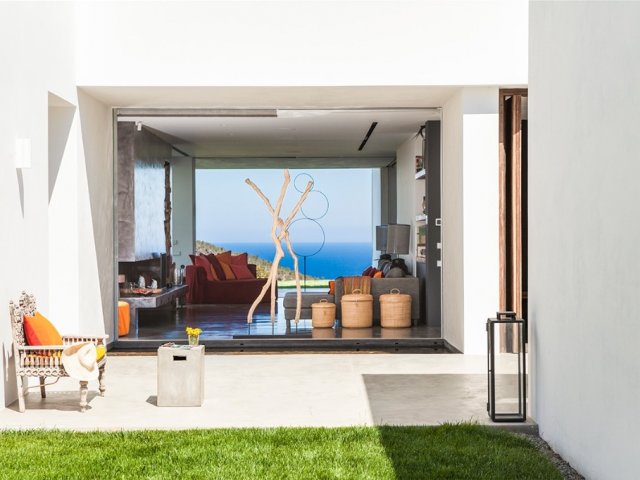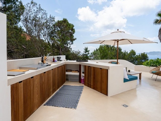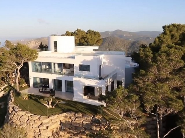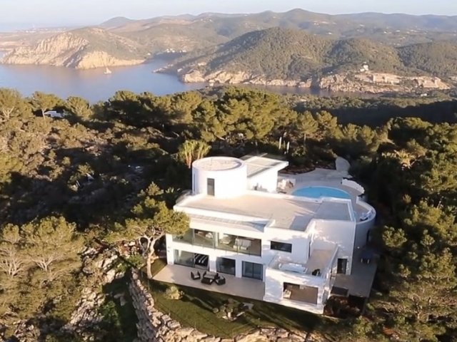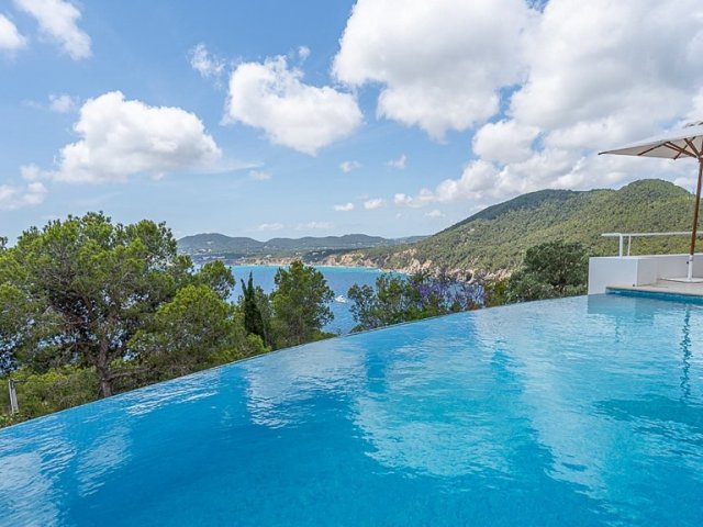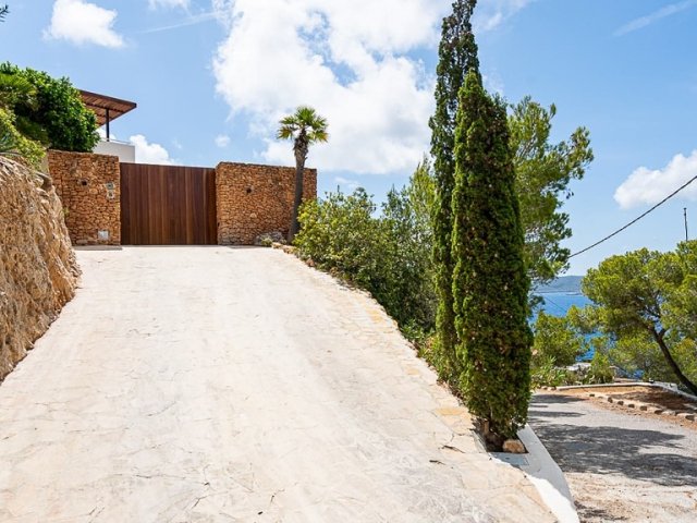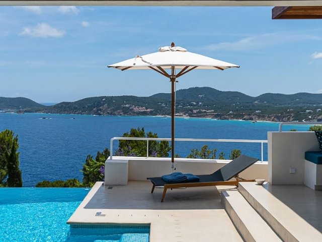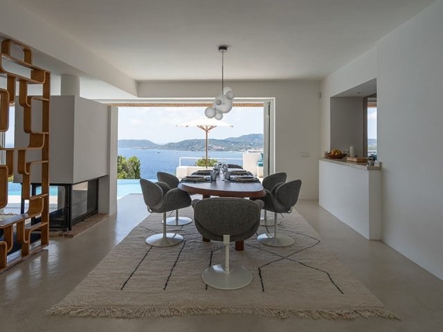 This private holiday villa in Na Xamena, Ibiza features 5 en-suite bedrooms, a pool, sea and sunset views, plus direct access to the water.
