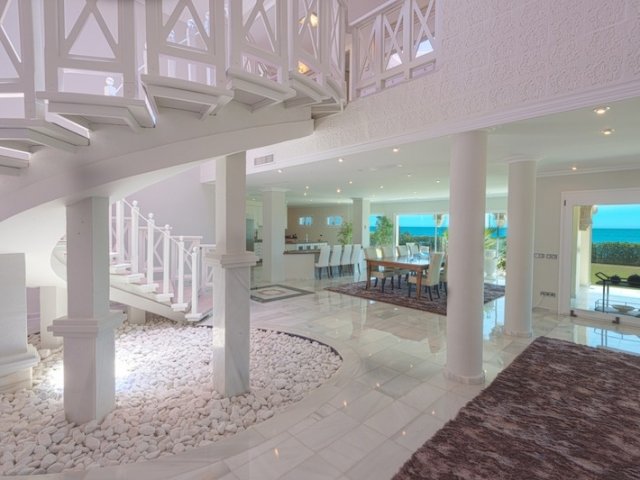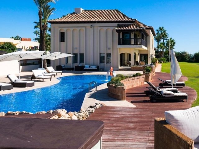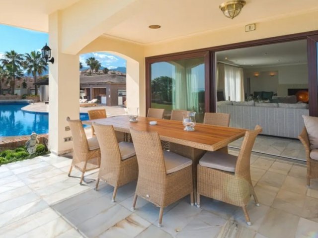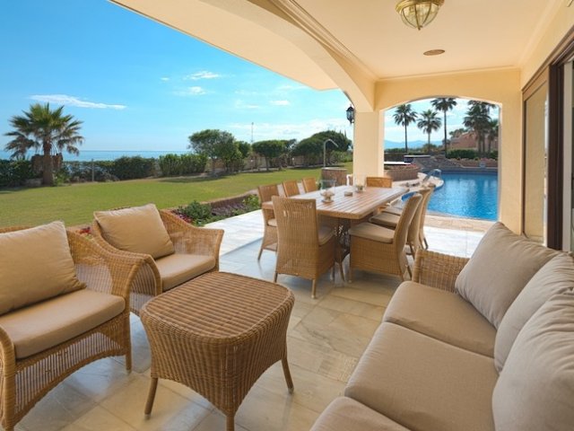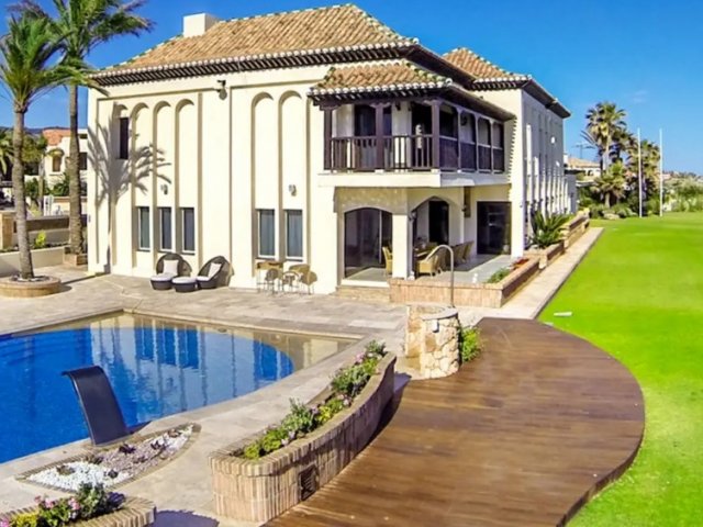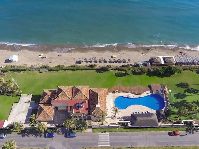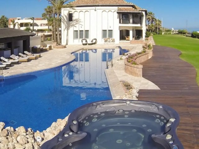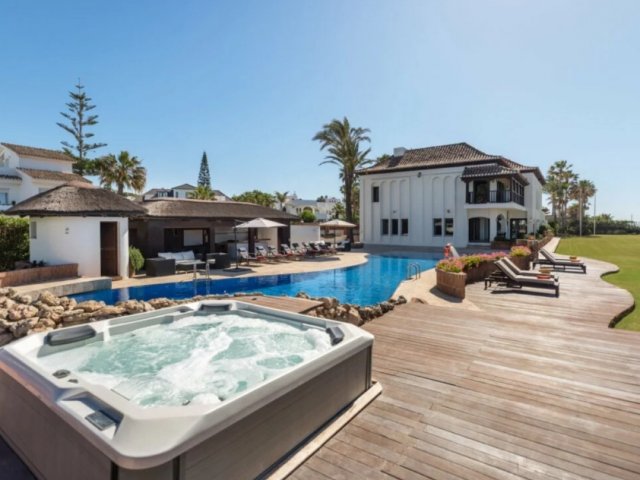 This stunning beachfront holiday villa in Los Monteros, Marbella features 7 bedrooms, exceptional amenities and breathtaking sea views.