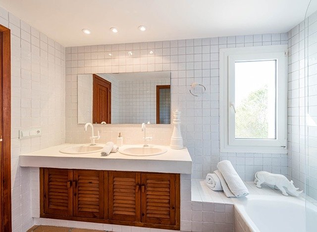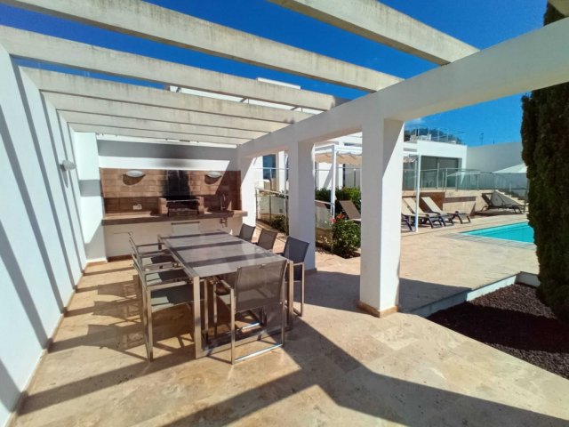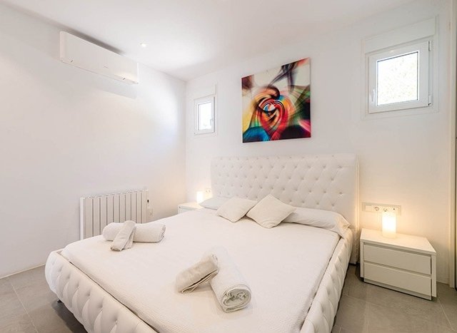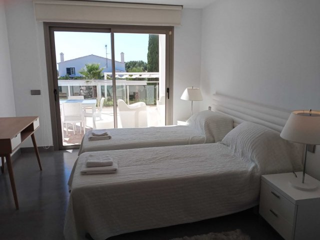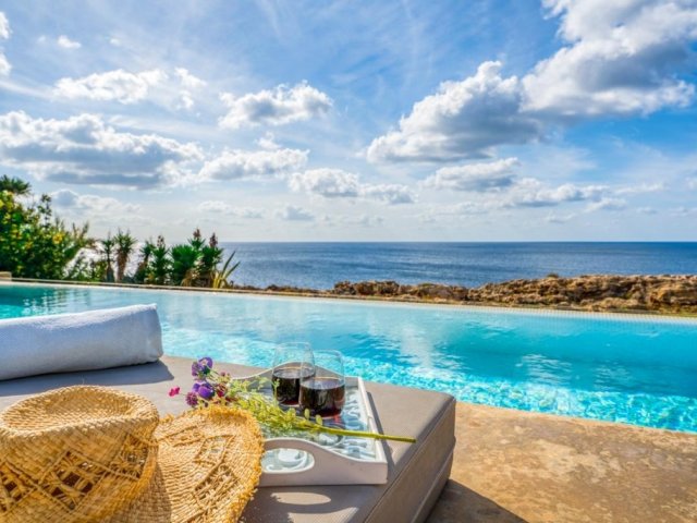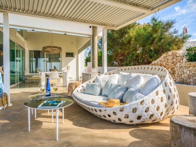 This family-friendly holiday villa in Punta Prima, Menorca offers luxury, sea views, and spacious accommodations for up to 12 guests.