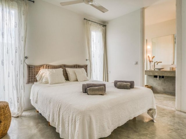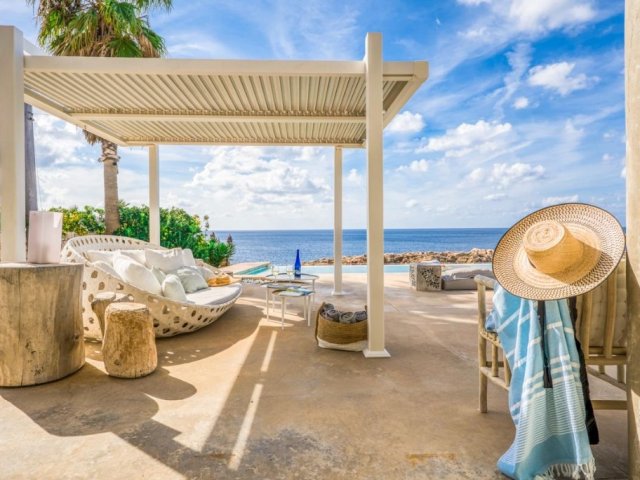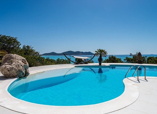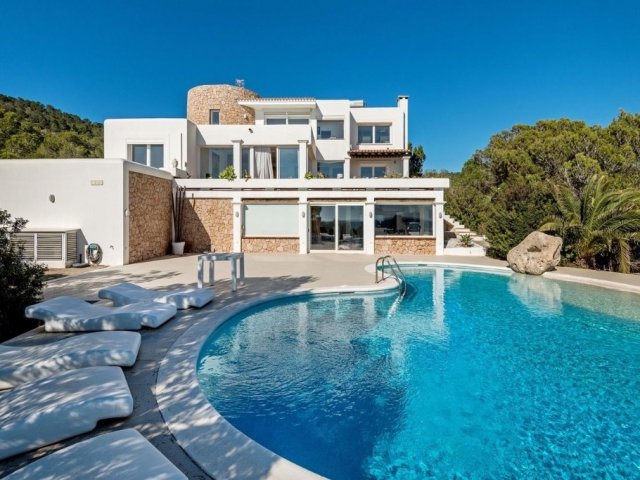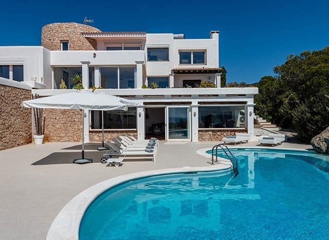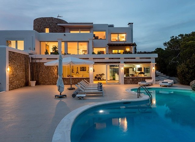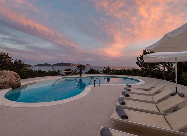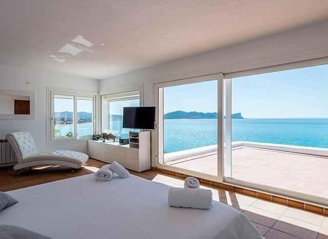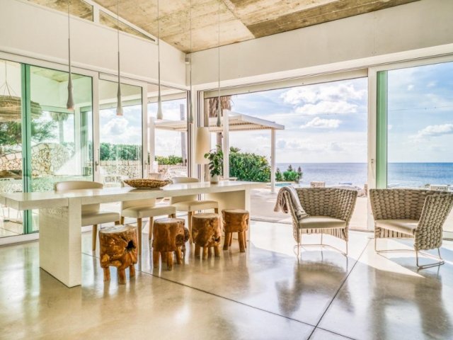 This five-bedroom beachfront retreat in Ibiza sleeps up to 10 guests and offers direct beach access, a striking pool and breathtaking sea views.