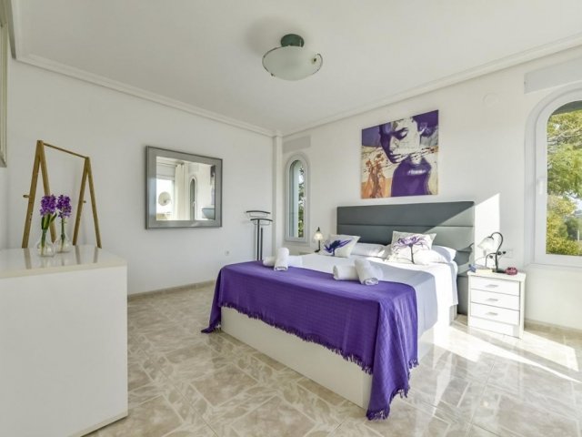 This holiday villa in Calpe offers panoramic sea views, a private pool, and comfortable accommodations for up to 11 guests, ideal for a relaxing Spain rental.