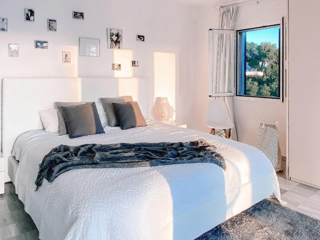 Luxury 4-bedroom villa for 8 guests with private pool, hot tub, landscaped garden, terraces, BBQ, A/C, WiFi and beautiful views near Arenal Beach and Moraira.