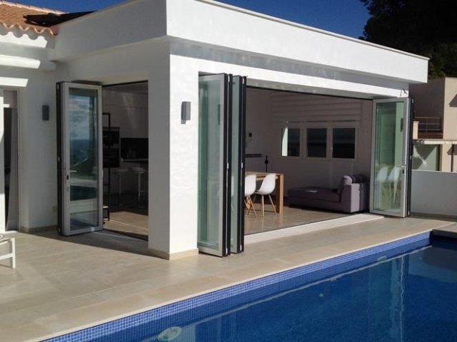 Modern 5-bedroom villa in Moraira for 10 guests with sea views, private pool, BBQ terrace, A/C and walking distance to beach, marina and restaurants.