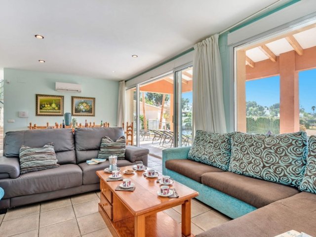 Discover this spacious 4-bedroom holiday home in Moraira, ideal for family or group rentals, located just 2 km from the popular El Portet beach.