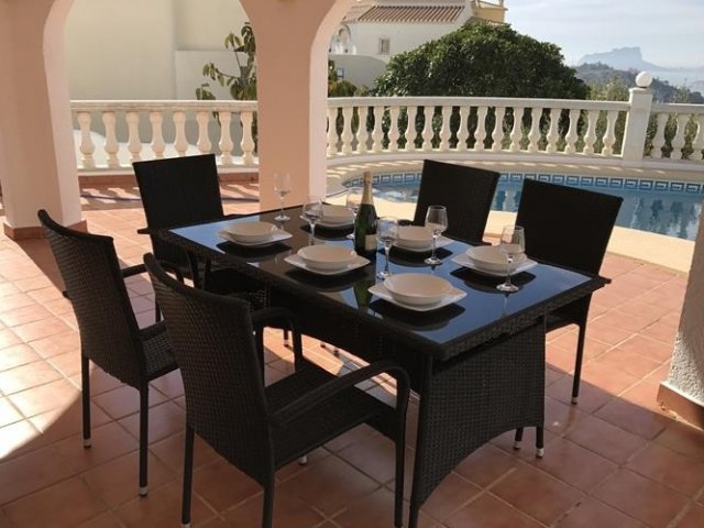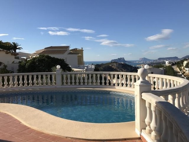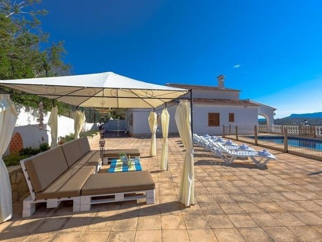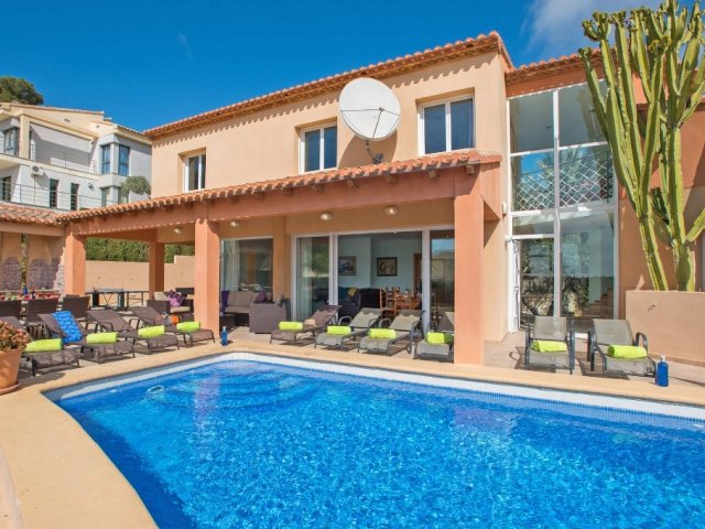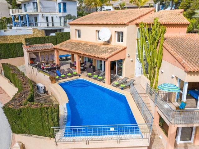 Spacious 5-bedroom villa with private pool in Cumbre Del Sol, offering stunning sea and mountain views. Ideal for families and groups.
