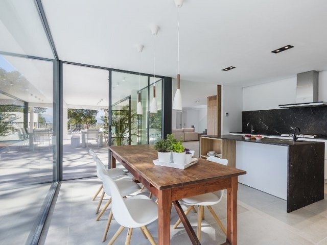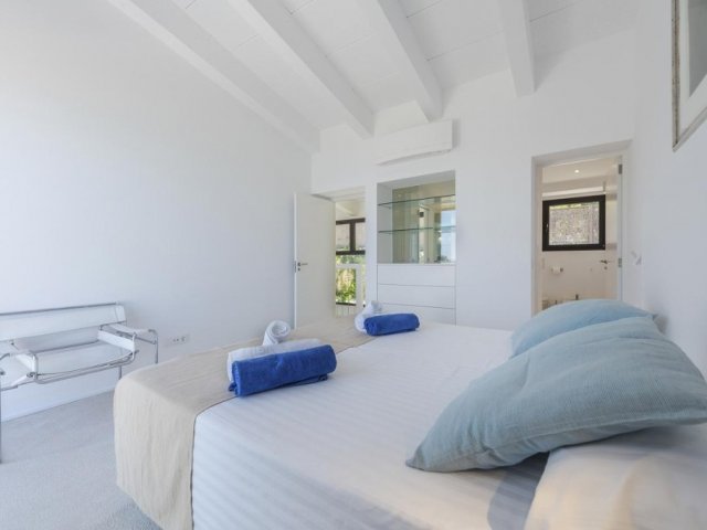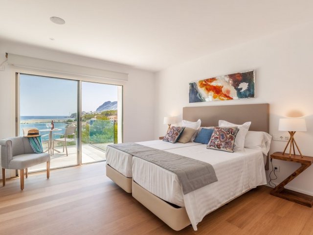With direct beach access in Mal Pas, this luxury retreat sleeps up to 12 guests and offers breathtaking views across the Bay of Pollensa.