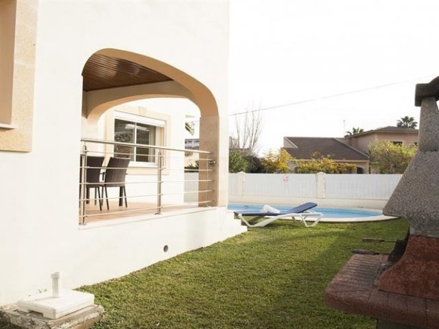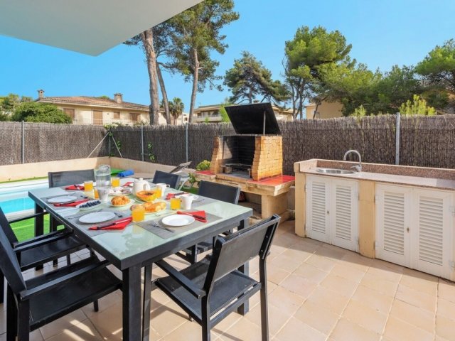 A 4-bedroom holiday haven in Alcudia with private pool. Enjoy a large grassy garden, kid's play area, professional pool table, and outdoor dining under a porch.