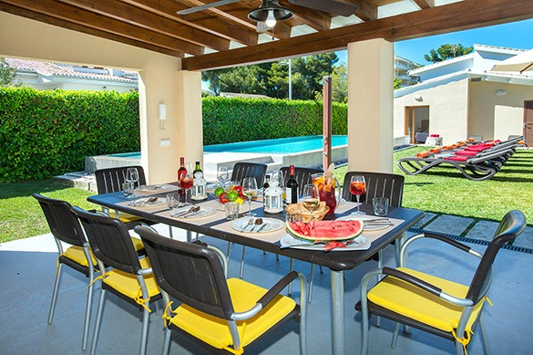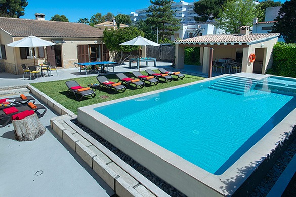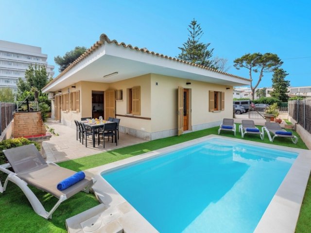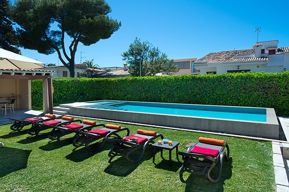 This holiday villa for rent features a heated pool and sits just 145 m from Alcudia Beach, an ideal family retreat for Mallorca holiday rentals.