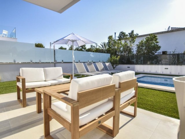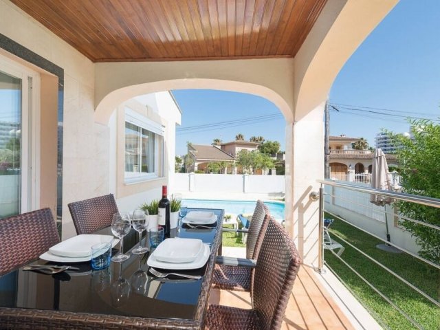 Beachside 3-bed villa just 100m from Playa de Muro, with private pool, A/C bedrooms, BBQ area and a balcony suite-perfect for a relaxing Alcúdia getaway.