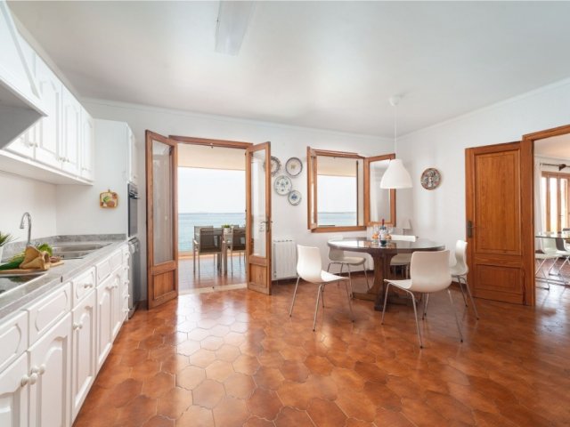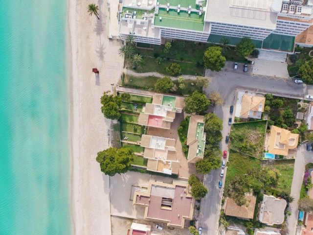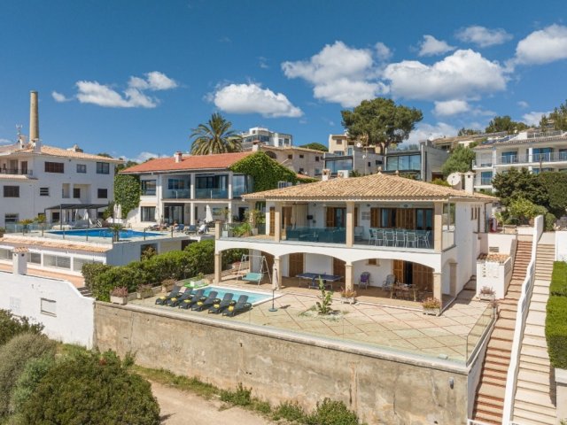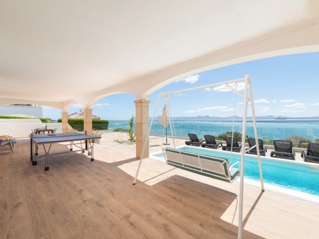 Elegant 5-bed beachfront villa in Playa de Muro with private pool, sea access, multiple porches, AC and bright interiors-just 20 m from the beach.