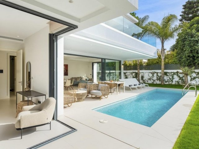 This elegant 4-bedroom holiday villa on Marbella’s Golden Mile offers a private pool and is just steps from the beach, sleeps 8.
