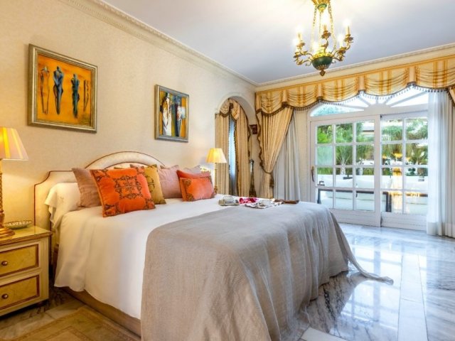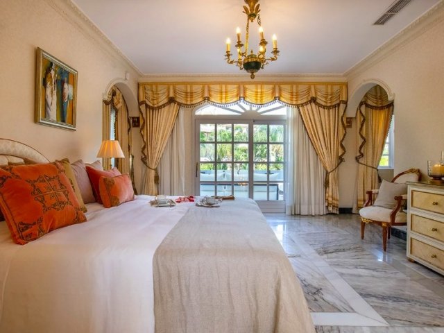 Minutes from the beach and marina, this prime Puerto Banus retreat offers 7 en-suite bedrooms and two pools, ideal for stylish group holiday rentals.