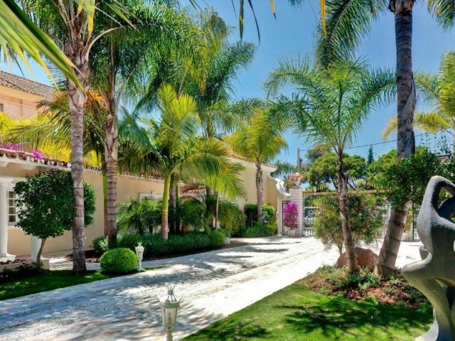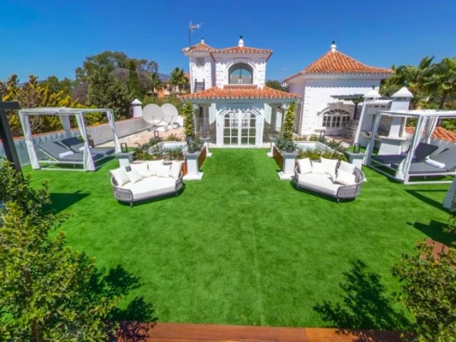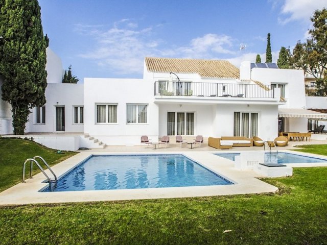 Spacious 7-bedroom villa with a large pool, garden, and entertainment area, just 10 minutes from Puerto Banus marina and beaches.