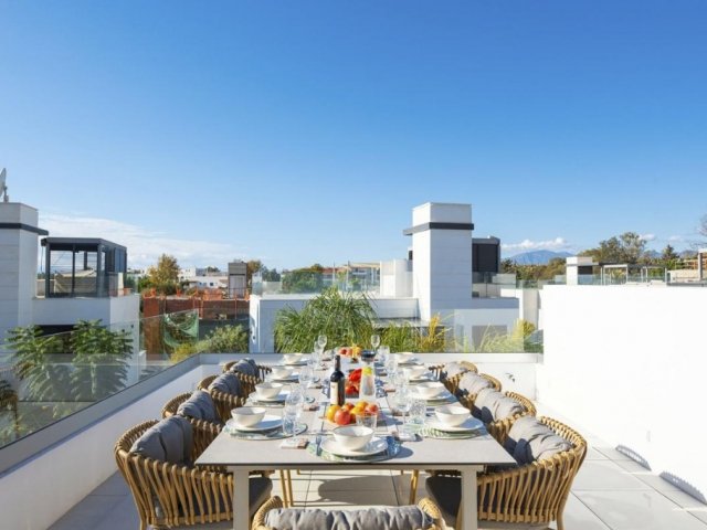 7-bedroom getaway in Puerto Banus. Enjoy a private pool, rooftop deck, and exquisite interiors, all just minutes from the vibrant Marbella scene.