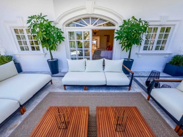 This five-bedroom luxury escape in Puerto Banus combines comfort and location, featuring a private heated pool and an ideal setup for families or groups.