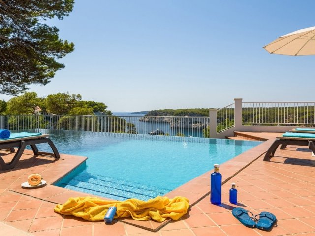 This luxury holiday villa in Cap Den Font, Menorca offers a private pool, stunning sea views, and is ideal for family beach holidays, sleeps 10.