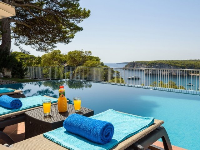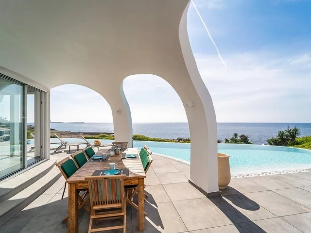 This family-friendly luxury villa in Menorca offers 6 bedrooms and an infinity pool, perfect for an exclusive holiday experience.