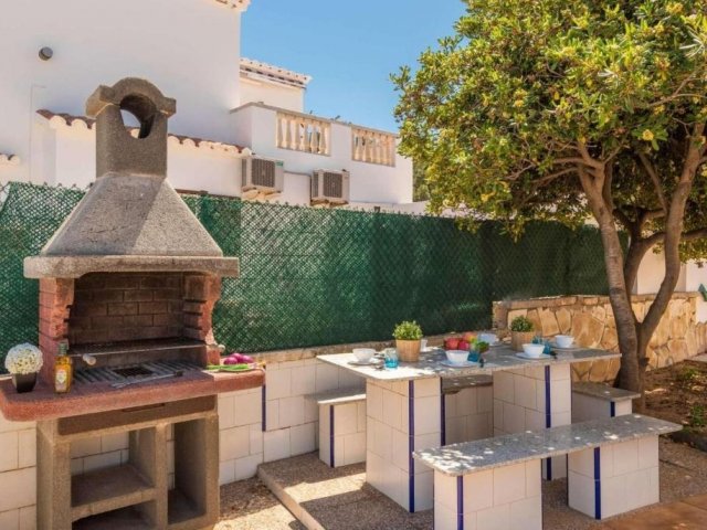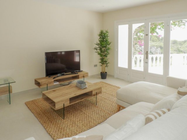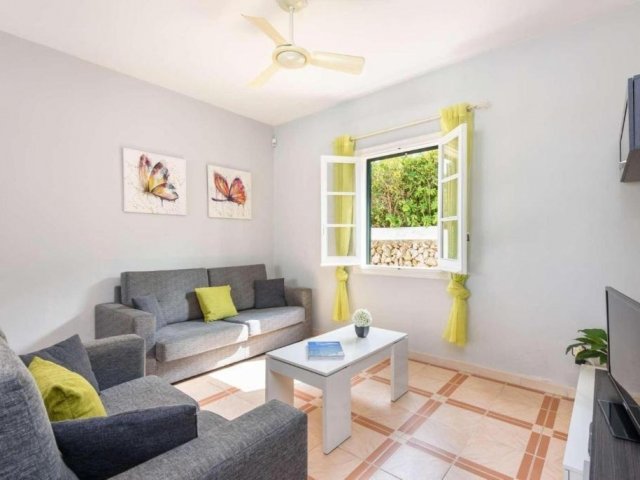 A beautiful 3-bedroom retreat in Arenal den Castell, offering breathtaking sea views, a private pool, and a spacious terrace for outdoor living.