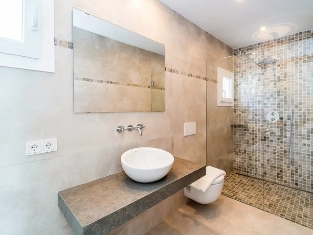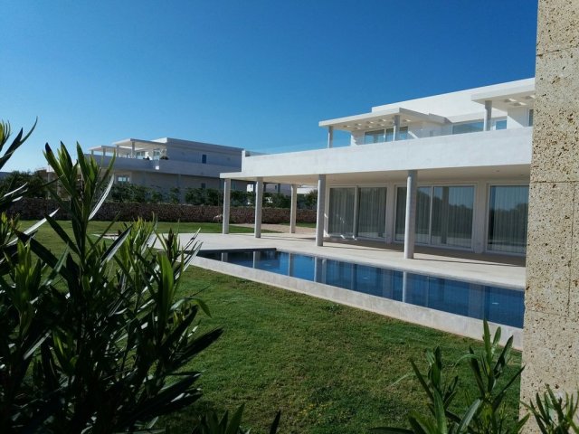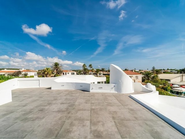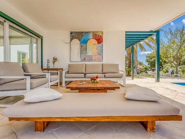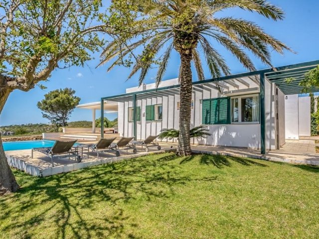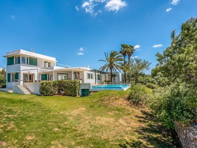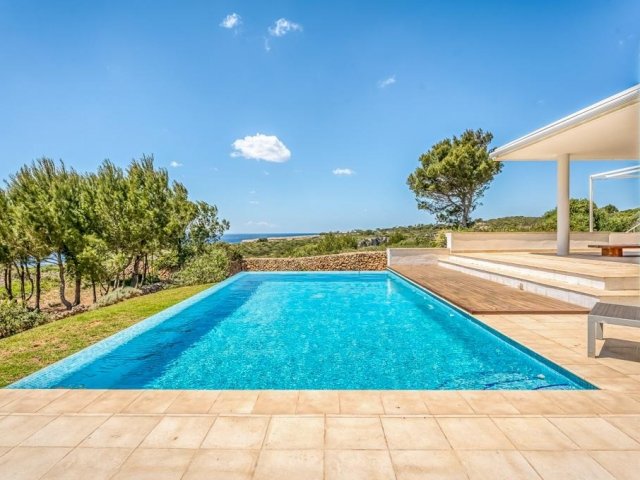 Modern villa in Cap d'en Font, Menorca, with 4 bedrooms, 4 bathrooms, private pool, garden, terraces, lounge spaces, indoor and outdoor dining room