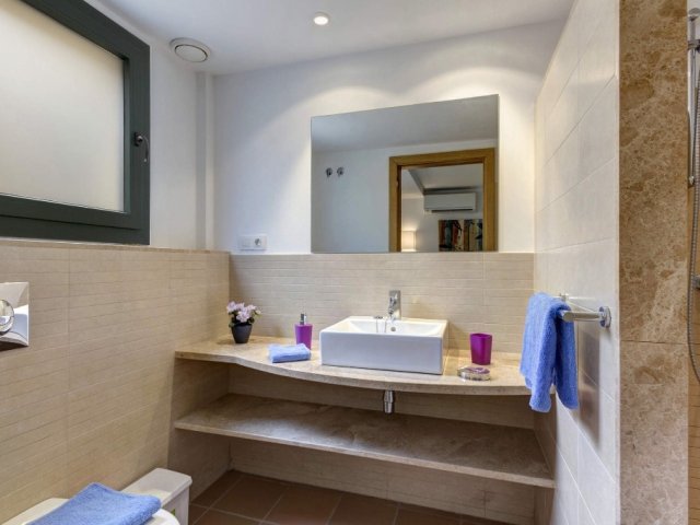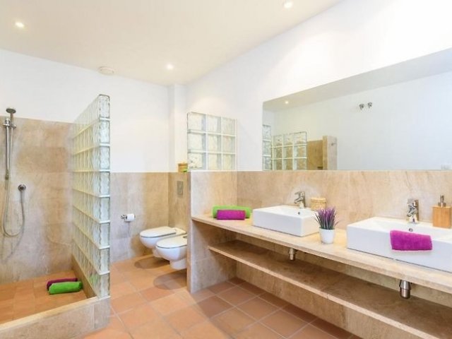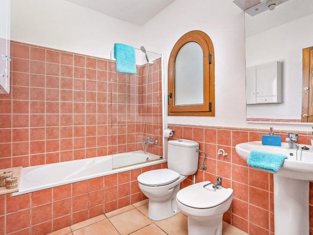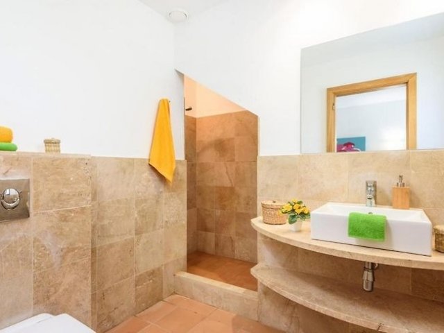A stylish 4-bedroom retreat in Cala Galdana, Menorca, featuring a heated pool, en suite bathrooms, and located just 1.2 km from beautiful sandy beaches.