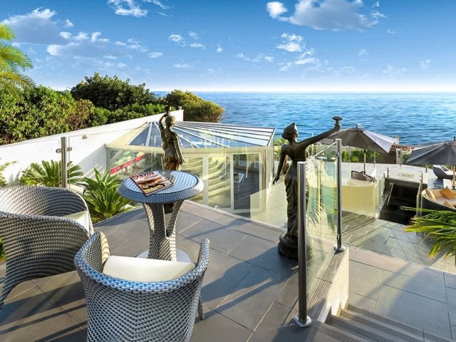 A luxury 5-bedroom beachfront retreat in Cala de Mijas, featuring direct beach access and a heated infinity pool in an exceptional setting.