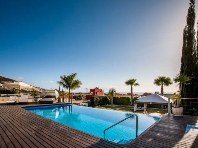 Ultra-luxury 8-bedroom villa for 14 with private pool, jacuzzi, games room, terraces, and more in Costa Adeje, Tenerife.